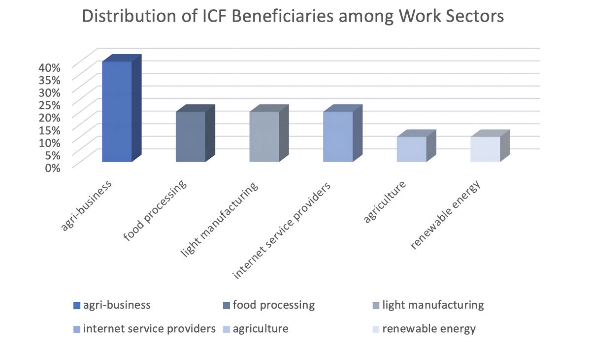 The ICF beneficiaries varied among the targeted work sector diversifying the value for the Palestinian Economy. The distribution of the beneficiaries is represented in Graph#1.